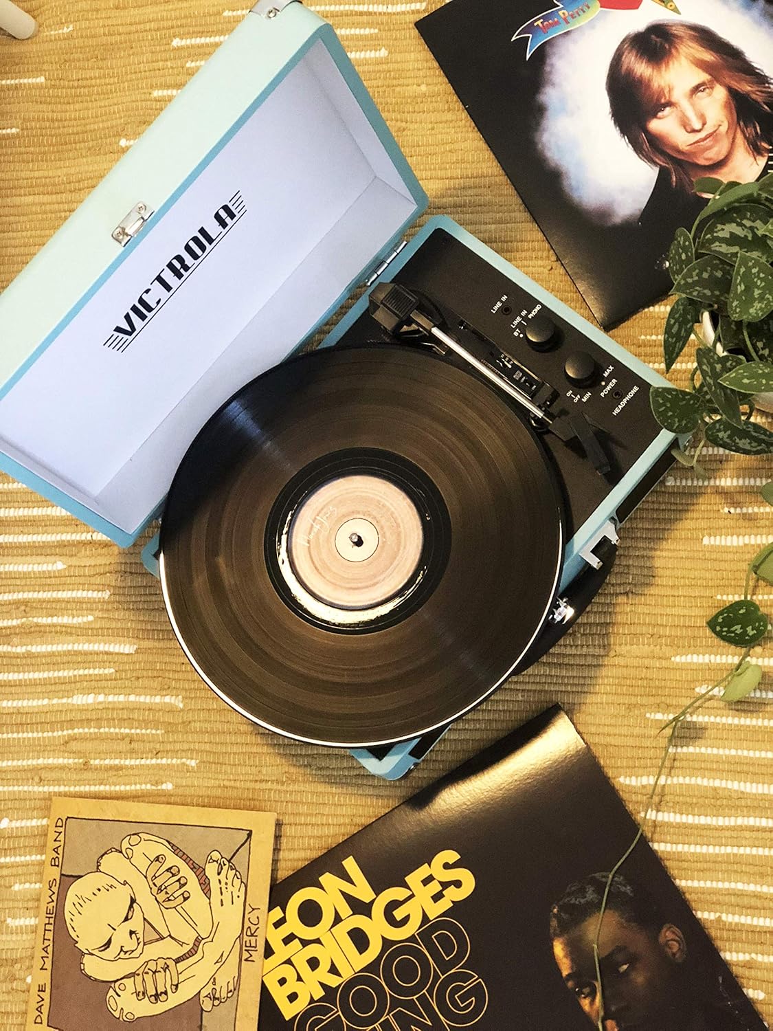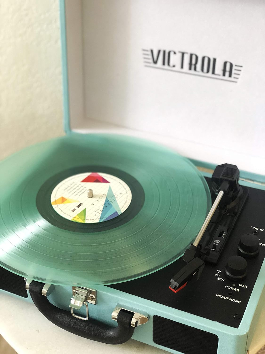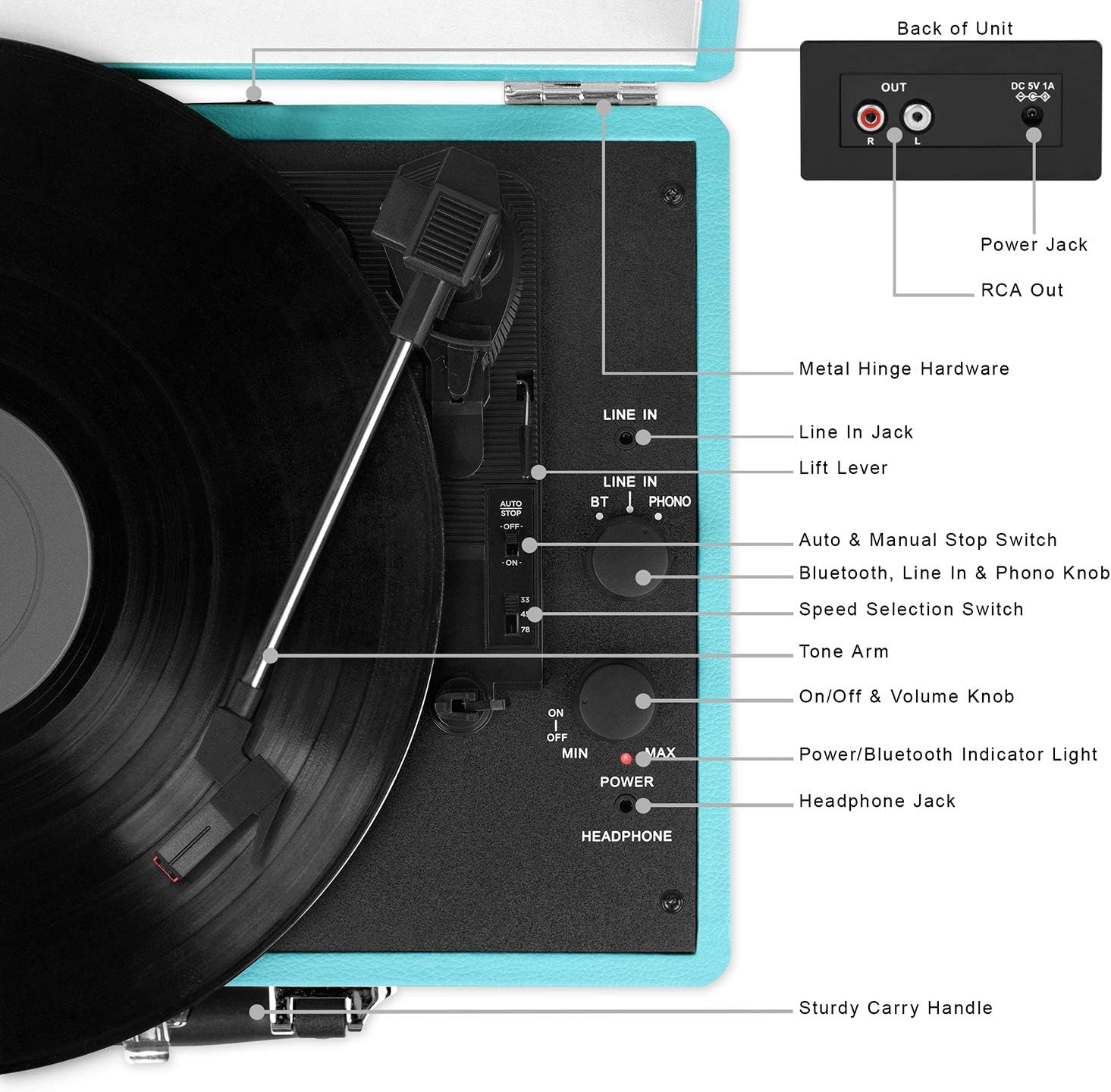 Victrola Vintage 3-Speed Bluetooth Portable Suitcase Record Player with Built-in Speakers | Upgraded Turntable Audio Sound| Includes Extra Stylus | Turquoise, Model Number: VSC-550BT-TQ